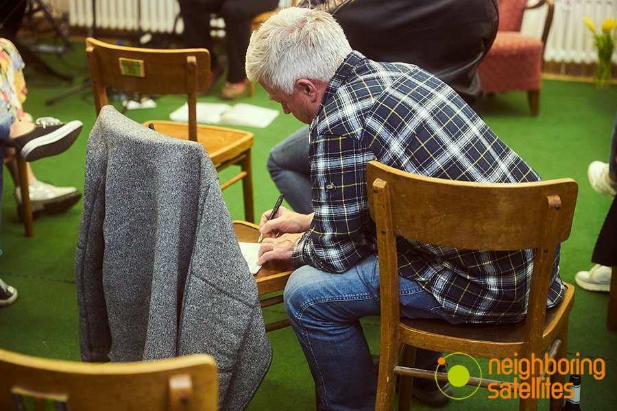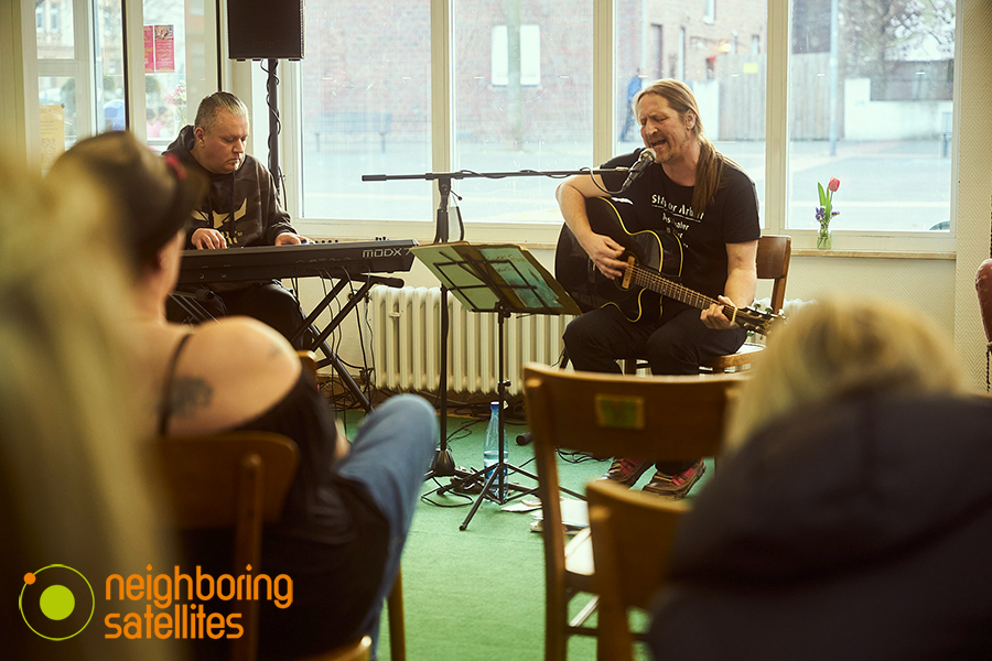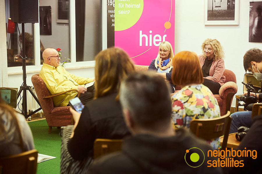 Das Neighboring-Satellites-Projekt zieht weitere Kreise: Mit der Veranstaltung Heimatabend Teil 4* ging am 26. März die kreative Auseinandersetzung zu den Möglichkeiten in der Umlaufbahn rund um den Ernst-Käsemann-Platz in Rotthausen in die nächsten Runden. Kim Schluckwerder und Katharina Greitemeier waren als Talkgäste geladen. Die beiden sind seit letztem Jahr Mitglieder des Gebietsbeirates und haben ihrerseits mit der Aktion „Ein Herz für Rotthausen“ erste Schritte in Richtung Nachbarschaftsbeteiligung und Aufhübschung des Stadtteils getan. Musikalisch begleitet von Jagsteit & Friends erwartete die Teilnehmer*innen des Abends in der gut gefüllten „Homebase“ des Projektes am Rotthauser Markt ein informativer Austausch zu weiteren Ideen und konkreten Plänen.